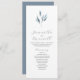 Ce modèle de programme de mariage long thé présente des feuilles d'aquarelle uniques en bleu poussiéreux. Utilisez les champs modèle pour ajouter votre commande de service. La carte repasse à une couleur unie. Pour voir d'autres thèmes mariages comme celui-ci, visitez www.zazzle.com/dotellabelle Art unique et design de Victoria Grigaliunas de Do Tell A Belle.