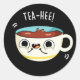 Tea Hee Funny Tee Cup Pun Dark BG Runder Aufkleber