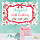 Beginnen Sie Ihren Geburtstag mit einem Tee-Party mit diesem großen dekorativen Banner. Erstellt mit einem niedlichen Hintergrundmuster aus gestapelten Teebechern und Kuchen mit Sprinklen in Rot, Rosa und aquamarinen Farben. Personalisieren Sie es mit Ihrem eigenen Text.