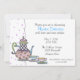 Tea Party Bridal Shower Invitation montrant les illustrations de Donna Childree Gotlib. Une invitation élégamment fantaisiste avec une théière lumineuse et joyeuse et une tasse de thé dans des couleurs douces et joyeuses de rose et de violet.