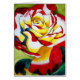 avec un design original de la peinture aquarelle de Sacha Grossel de rose de thé hybride rouge et jaune contre arrière - plan vert. Ce design d'art lumineux et contemporain est d'un grand design macro-floral au foyer rapproché d'un motif botanique dans un style lumineux, vif et coloré pour les amateurs de fleurs et de roses partout.