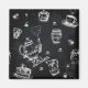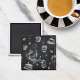 Für Ihren Kühlschrank in Schwarz/Weiß, Teezeit Thema Hintergrund Muster. Schwarze Tafel mit handgezeichneten Abbildungen in Weiß. Personalisieren Sie es mit Ihrem eigenen Namen!