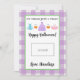 Diese Lehrerin Halloween-Karte zeigt einen lila und weißen karierten Hintergrund mit grünen Akzenten und sagt: "Keine Tricks nur eine Leckerei. Glückliches Halloween!" und ein niedliches Trio mit Kostümen. Es gibt auch einen Platz, um eine Geschenkkarte verlassen. Personalisieren Sie Ihre persönlichen Daten mit dem Namen Ihres Kindes.