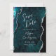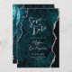 Teal Agate Silver Script Wedding Save the Date Einladung