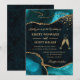 Teal and Gold Glitter Agate Wedding Einladung