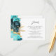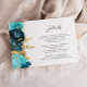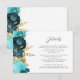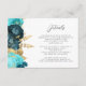 Teal Aqua Floral Gold Script Wedding Details Begleitkarte