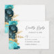 Teal Aqua Gold Floral Modern Script Wedding RSVP Karte
