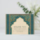 An opulent Islamic wedding design featuring a teal and gold arched frame inspired by mosque architecture and Persian artistry. With intricate floral motifs and geometric symmetry, this invitation exudes elegance, spirituality, and timeless cultural refinement — ideal for a luxurious Islamic wedding.