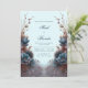 Invite your guests to an event of striking, modern elegance with this uniquely symmetrical botanical composition. The design features large, velvety teal blue floral bloom at the center of the arrangement, beautifully contrasted by metallic copper and bronze toned feathery foliage. Delicate arching branch with small lavender purple bud add a sense of height and movement against the serene, pale blue gradient background. This wedding invitation is a premier choice for a modern winter ceremony, a sophisticated dark botanical event, or a chic contemporary celebration. It ensures your event details are presented with a sense of artistic balance and high-end drama that will intrigue your guests from the moment they open the envelope.
