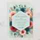 Embrace an artistic and romantic atmosphere with this stunning floral design. A vibrant palette of deep teal and bright coral blossoms contrasts beautifully against a soft, pale mint background. The composition features lush, painterly anemones and zinnias with delicate greenery, creating a rich and opulent botanical tapestry.