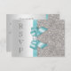 Cartes de réponse plates personnalisées pour RSVP formel pour tout événement - mariages, baby showers, fête d'anniversaire, sweet 16, célébrations de Quinceanera, fiançailles, douche de mariée, etc. Cartes de réponse personnalisées élégantes en argent et bleu sarcelle / turquoise avec un motif brillant imprimé pailleté, strass, sequins, noeuds et rubans vectoriels brillants imprimés et image imprimée élégante et stylée diamants bling bijoux et texte gris foncé. Ces RSVP argent et sarcelle élégants et glamour sont décorés des deux côtés. Cartes doubles élégantes, chic, tendance, modernes avec éclat et glamour. Veuillez noter : Toutes les invitations sur Zazzle ont des images imprimées à plat. J'ai des produits assortis dans ma boutique. Le texte, la police et les couleurs de la police sont tous personnalisables pour répondre à vos besoins. Si vous avez besoin d'aide pour personnaliser votre produit, veuillez me contacter via ma boutique. Je serai ravi