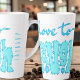 Brighten every morning with our beautiful "Love to Laugh" Latte Mug. It has a whimsical, floral edged font that is hand drawn and a blue teal color palette. The elegant, tapered silhouette makes it the perfect vessel for creamy lattes, frothy cappuccinos, or a comforting tall cup of tea.