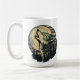 This striking artwork features a textured howling wolf illustrated in gray and teal shades, set against a stylized cream moon with bold teal stripes. Below the moon lies a detailed forest silhouette that completes the wild, atmospheric scene. With its limited vintage-inspired palette and dramatic composition, this design is perfect for nature lovers, wolf fans, and anyone drawn to bold wilderness aesthetics.
