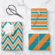 Teal, Orange, and White Chevron & Stripe Patterns Geschenkpapier Set