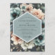 Evoke a sense of moody romance with this elegant artistic design. A stunning arrangement of teal anemones, soft peach roses, and ivory blossoms unfolds against a deep charcoal background. The ethereal, watercolor-style artistry creates a sophisticated and dramatic atmosphere for your nuptials. This botanical composition is perfect for a chic and memorable union.