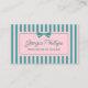 Teal & Pink Stripes & Bow Retro Visitenkarte