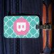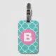 Teal Quatrefoil Pattern Custom Pink Monogram Gepäckanhänger