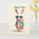 This card features a white rabbit standing upright at the center 🐰, with a soft fur look set against a creamy background that fades outward like a gentle glow. The rabbit’s large blue eyes shine behind oversized teal glasses, and its small smile with a rosy blush suggests a friendly, slightly flirty confidence. It wears a bomber-style jacket in pastel teal and soft coral pink, finished with a sandy-colored collar and ribbed cuffs for a cozy, modern touch. Both front paws rest in the jacket pockets, giving the pose an easy, “come say hi” kind of warmth. Near the top, the words “Happy Easter” appear in teal lettering, positioned above the rabbit so the greeting feels light and airy 🌷. Soft, diffused lighting keeps the colors calm and springlike, with no harsh shadows competing for attention. The teal text sits centered above the rabbit’s head, matching the glasses, while the creamy backdrop stays smooth and uncluttered.
