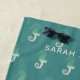 Add your name to this herd of watercolor seahorse patterned teal beach towel. Suitable for all mermaids and mermen.
