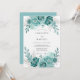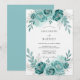 A serene and romantic design features painterly blooms in varying shades of teal. Delicate sprigs and leaves in muted grey add depth and elegance. This artistic floral arrangement evokes a dreamy, ethereal mood for a special occasion.
