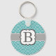 Teal White Monogram Letter B Chevron Schlüsselanhänger