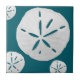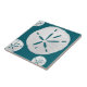 Teal and white Tropical Beach Sand Dollar beach home decorative tile.