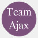 Ein lila "Team Ajax" Aufkleber-Set. Es gab zwei Männer im griechischen Mythos namens Ajax. Der erste war "Ajax der Große", der im Trojanischen Krieg kämpfte und sich umbrachte, nachdem Odysseus das Schild und das Schwert von Achilles verliehen worden war. Der andere war "Ajax der Kleinere", der schließlich ertrank, nachdem Athena und Poseidon verärgert worden waren.