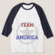 Ein silberner Stern innerhalb eines silbernen Ringes und die Wörter "Team Amerika" in Rotem und in Blau getan in einem verblaßten beunruhigten Blick.