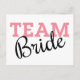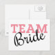 Lass allen, wer das Team ist, auf dem du mit dieser rosa Skript-Postkarte von Team Bride bist. Ideal für Junggeselinnen-Abschiede und andere Hochzeitsfeiern.