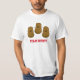 Drei lustige braune Cartoon Kartoffeln mit einem großen Lächeln und kleinen schwarzen Augen. Unten ist eine Vorlage, die TEAM POTATO in rot und schwarz liest. Diese Vorlage kann so verwendet werden, wie sie ist, oder um zu Ihrem eigenen Text zu wechseln.