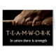 Teamwork: In der Gewerkschaft gibt es Kraft Grußkarte horizontale Postkarte
