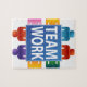 Illustration eines Teams der Leute, die um eine Tabelle zusammenarbeiten.