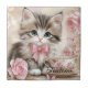 Diese Keramikfliese wird mit süßem Teatime-Kätzchen-Druck gezeigt.