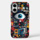 Kühne Linien, glänzende Muster und ein graffiti-inspiriert Schlamassel von Retro-Gadgets prägen diesen lauten und stolzen Handykoffer. Ein Muss für Tech-Rebellen.