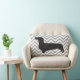 Silhouette noire de teckel sur un arrière - plan gris et blanc de motif de chevron.