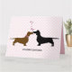 Amants de teckel épousant la grande carte de voeux faite dans un motif rose et blanc de quatrefoil, avec les silhouettes des baisers bruns et noirs de teckel. Personnalisez tout le texte pour adapter à vos besoins. Carte douce pour tous amants de doxie.