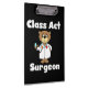 Ein niedlicher ER-Doktor, der die Liebe eines Chirurgen bestimmt, verfügt über einen Teddybärarzt mit Labrador-Mantel, Stethoskop und weißem Text, der auf schwarzem Hintergrund den Class Act Chirurg liest.
