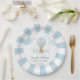 Niedlicher blauer Teddy-Bär, der auf Heißluftballon Baby Boy Dusche Party Papier Teller fliegt.