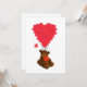 Funny niedlich Teddy Bär Cartoon Tier und ein romantischer roter Valentiner Liebe Herzballon, auf einem individuellen Hintergrund