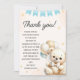 Cute design for your baby boy shower with an image of a cute watercolor teddy bear with beige and brown tones with white with the phrase "we can bearly wait" with cute modern typography in blue colors. This cute design is ideal for your baby boy shower. Don't forget to check out the collection of this cute design for complementary products.