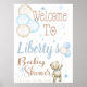 Teddy Bear Blue Baby Dusche Begrüßungszeichen Plak Poster