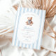 Grandmillennial Teddy Bär Geburtstagsfeier Einladung für jedes Alter, mit klassischen blauen Streifen und einem Vintagen Teddy Bär