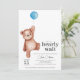 Eine Babydusche "wir können frühzeitig warten" Einladung mit einem Teddybär und einem blauen Ballon für einen kleinen Jungen. Matching Artikel in der Teddy Bear Baby Shower Theme Kollektion erhältlich.