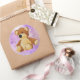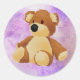Der süße Teddybär mit lila Hintergrund ist auf diesem Kreisaufkleber zu sehen. Benutzen Sie diesen niedlichen Aufkleber für spezielle Mailings, Scrapbooks, Dekorationsgeschenke und Kinder- oder Teddybären-Fans!