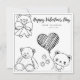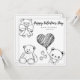 Teddy Bear Coloring Page Girl Card Frohes Valentinstag. Dies ist eine Valentinstag-Karte für Kinder mit einer farbenfrohen Bärenillustrierung. Auf der Vorderseite der Karte stehen verschiedene Bären, die sich perfekt für Kinder eignen, um ihre Lieben zu färben und zu personalisieren. Hier finden Sie die Wegbeschreibung von und nach wo Sie Ihren Namen auf der Rückseite der Karte hinzufügen können. Der Gruß auf der Vorderseite lautet "Happy Valentine's Day". Diese Karte ist ein lustiger und kreativer Weg für Kinder, ihre Liebe und Zuneigung am Valentinstag zum Ausdruck zu bringen.