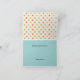 Carte de remerciements cadeau bébé doux fait dans un aqua coloré, orange muet et jaune doré sur motif pois en ivoire. Les graphiques d'un adorable ours en peluche marron foncé, avec un gros arc d'aqua, ornent l'avant de la carte. Personnalisez le texte noir, à l'intérieur et à l'extérieur, pour répondre à vos besoins. Des invitations et des enveloppes pour bébé assorties sont disponibles.