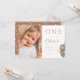 Ein niedliches und minimales Design mit "eins" in klassischen Serif-Hauptstädte, die oben auf der Karte gedruckt sind. Unten ist der Name des Geburtstagsjungen in grünen Schriftzeichen. Die Details des Party sind auf die links ausgerichtet, mit einem handbemalten Teddybär in Aquarellfarbe, der einen Party-Hut trägt, grünen Overalls und rechts eine kleine Fahne trägt. Auf den links gibt es ein Foto des Geburtstagsjungen. Karten kehren zu einem niedlichen Sternmuster auf warmen braunen Hintergrund zurück. Ideal für Teddybären-Picknick, Geburtstag im Bier und Waldthemen. Sehen Sie sich die auf dieser Seite verlinkte Sammlung für passende Artikel an oder besuchen Sie unseren Shop für weitere Einladungen zum ersten Geburtstag.