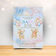 This editable teddy bear gender reveal invitation is perfect for your he or she party! Featuring pastel clouds, stars, and two adorable bears holding pink and blue balloons, it sets the sweetest tone for your celebration. The playful phrase “We can bearly wait to see what Baby Smith will be” makes this card extra memorable.