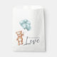 Diese bezaubernde Aquarellbild eines braunen Teddybären mit blauen Ballons in minimalistischem Design.