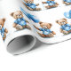 Zwei hübsche Teddybären, gekleidet in blauen Shirts und Bugs-Krawatte, halten blaue Ballons und schaffen eine charmante und spielerische Szene